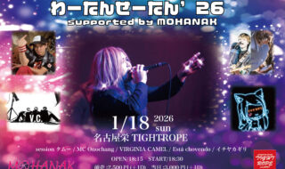 「わーたんせーたん’26」supported by MOHANAK 会場:名古屋栄タイトロープ出演:sessionタムー / MC Onochang / VIRGINIA CAMEL / Está chovend…